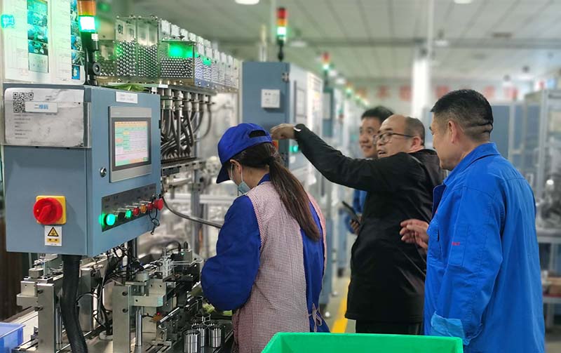 在轴承项目生产现场,姜部长对轴承产品的外观、尺寸、精度等进行了考察。姜部长还深入到轴承产品的加工车间,了解了轴承的加工工艺及相关流程和智能化的产线和物联网设备。同时,姜部长还听取了项目负责人对公司概